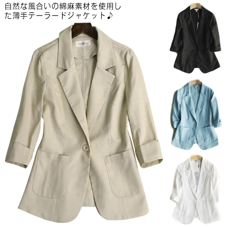 サマージャケット 七分袖 レディース レディース リネンジャケット 綿混 ショート丈 サマーレディースファッション コート ジャケット
