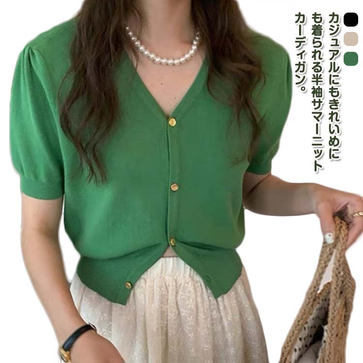 ニットカーディガン レディース 春夏 サマーニット 半袖カーディガン Vネック ニレディースファッション トップス Tシャツ カットソー