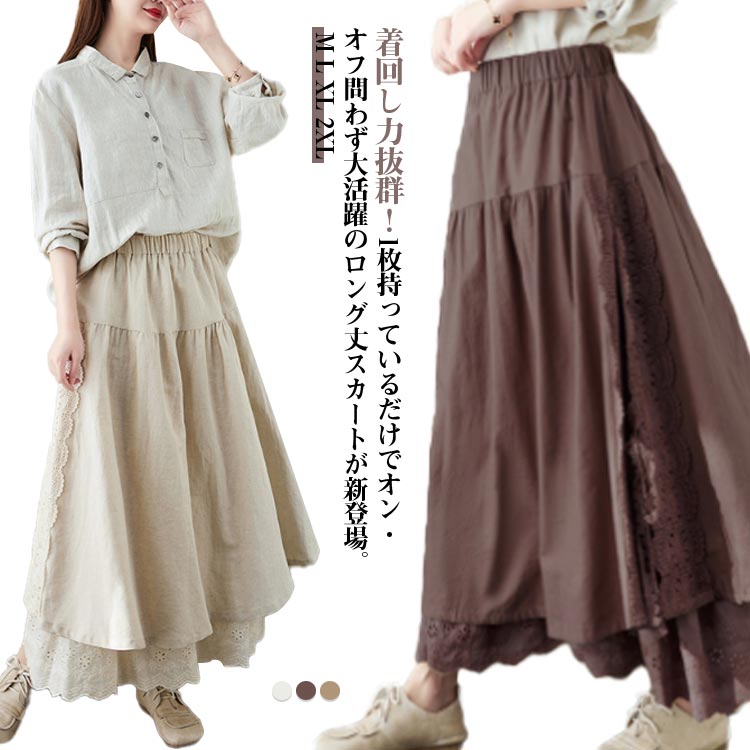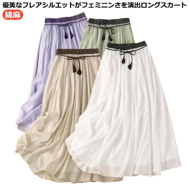 ロングスカート 綿麻スカート フレアスカート アシメ スカート 春夏 マキシスカーレディースファッション ボトムス スカート