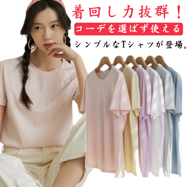 半袖 無地 綿 コットン 夏 レディース 半袖Tシャツ サマーtシャツ トップレディースファッション トップス Tシャツ カットソー