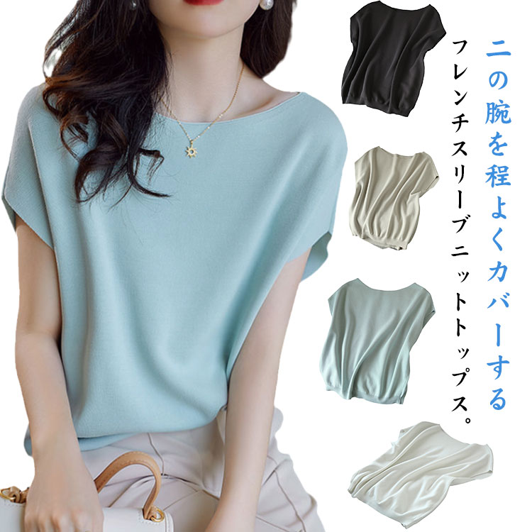 半袖 接触冷感 レディース フレンチスリーブ 半袖 Tシャツ 細見え ニットレディースファッション トップス Tシャツ カットソー