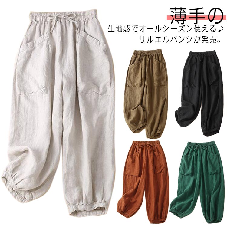 サルエルパンツ リネンパンツ レディース 部屋着 ロングパンツ コットン リネンレディースファッション ボトムス パンツ
