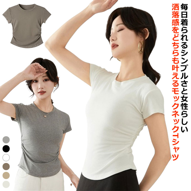 Tシャツ カットソー モックネック 半袖 春夏 サマー ストレッチ レディース 薄手レディースファッション トップス Tシャツ カットソー