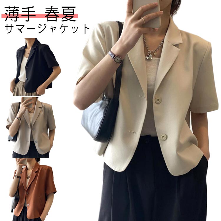 サマージャケット ショート丈 レディース 半袖 春夏 ジャケット ライトアウターレディースファッション コート ジャケット