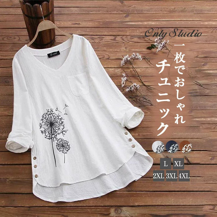 おしゃれ ブラウス シャツ 綿 花柄 tシャツ ナチュラル シンプル トップス プリント きれいめ カジュアル レディース 春服 夏服 可愛い 半袖