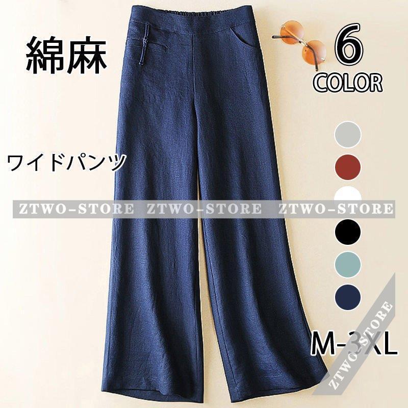 ワイドパンツ 綿麻ワイドパンツ リネン風 ボトムス 麻綿パンツ ガウチョパンツ レディース 体型カバー ナチュラルな風合い ゆったり