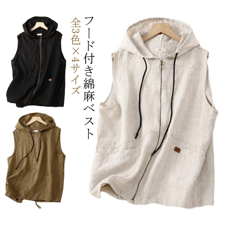 綿麻 麻 ベスト レディース 春夏 前開き 夏用 夏 リネン 麻 コットンリネン レディース 無地 夏 春 ナチュラル ブラック コーヒー