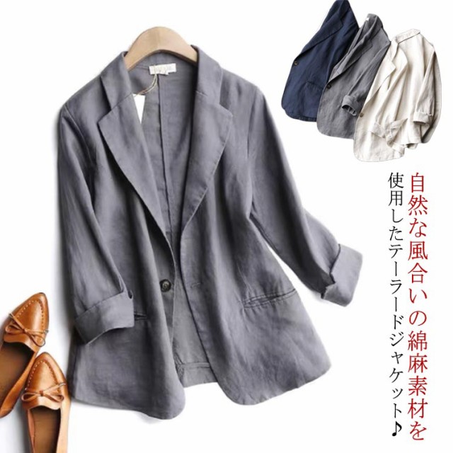 リネンテーラードジャケット テーラードジャケット レディース リネン 綿麻 リネンジャケット 薄手 ジャケット 夏 アウター