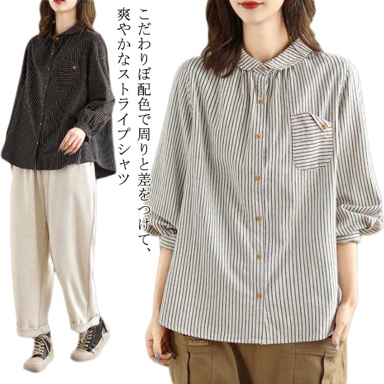 ストライプ シャツ レディース おしゃれ 半袖 ブラウス シャツ レディース トップス 襟付き シャツブラウス 丸襟 可愛い