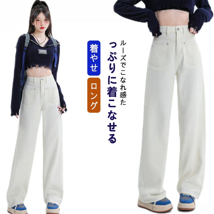 デニム パンツ レディース ストレートパンツ ジーンズ ボトムス 長ズボン ロング ゆったり ワイドパンツ 体型カバー
