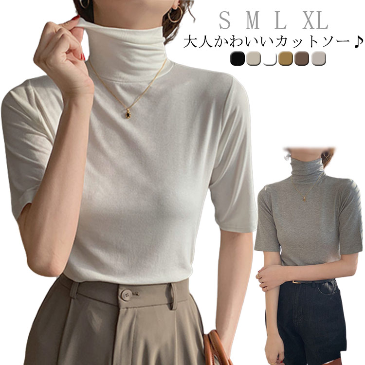ハイネック カットソー 半袖 レディース トップス 半袖Tシャツレディースファッション トップス Tシャツ カットソー
