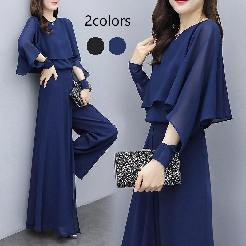 2点セット セットアップ パンツスーツ パンツスタイル フォーマルドレス 体型カバー 中袖 大人 おしゃれ かわいい 可愛い 結婚式 二次会 発表会 謝恩会 パンツドレス パーティードレス ワイドパン