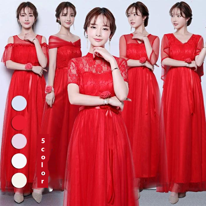 ブライズメイド ドレス ロングドレス グレー ピンク レッド 記念日 ダンス衣装 イブニングドレス パーティードレス ライン フレア 結婚式 ワンピース ロング丈 フリーサイズ シャンパン ホワイト