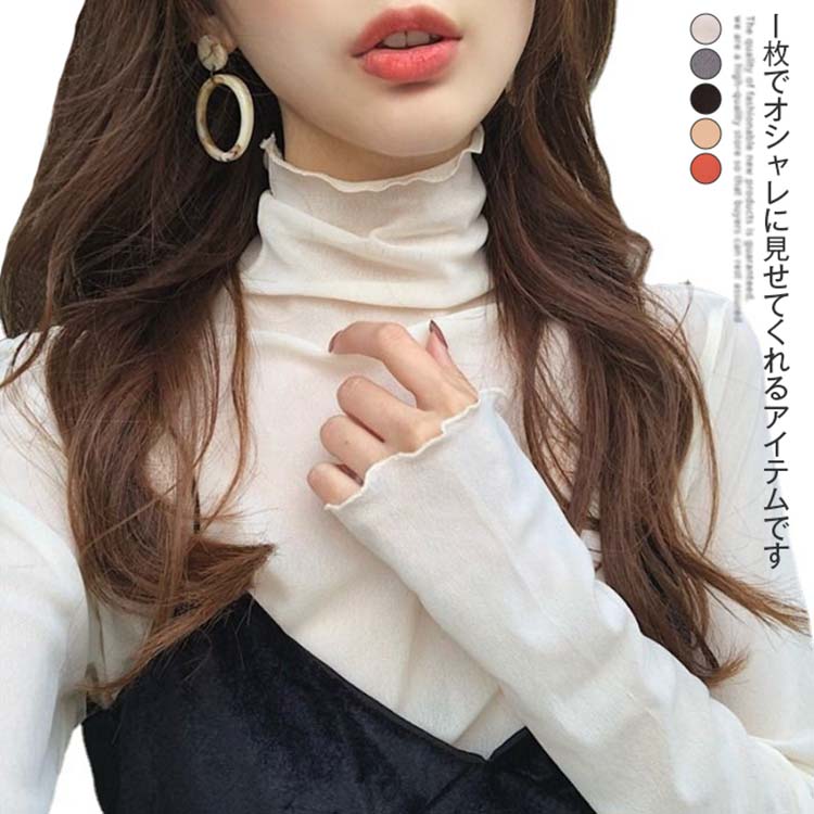 インナー シアー トップス レディース UV対策 透け タートルネック ハイネック 大きいサイズ 長袖 レイヤード 肌着 重ね着 フリル きれいめ 春夏 秋 冬 透け感 無地
