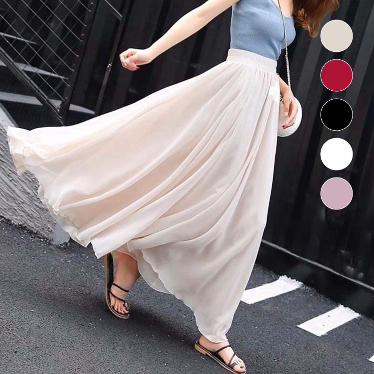 チュールスカート フレアスカート ロング レディース ジュニア ふわふわ 着痩せ 体型カバー チュール シフォン 5色選べる ハイウェスト ウエストゴム ゆったり 大きいサイズ