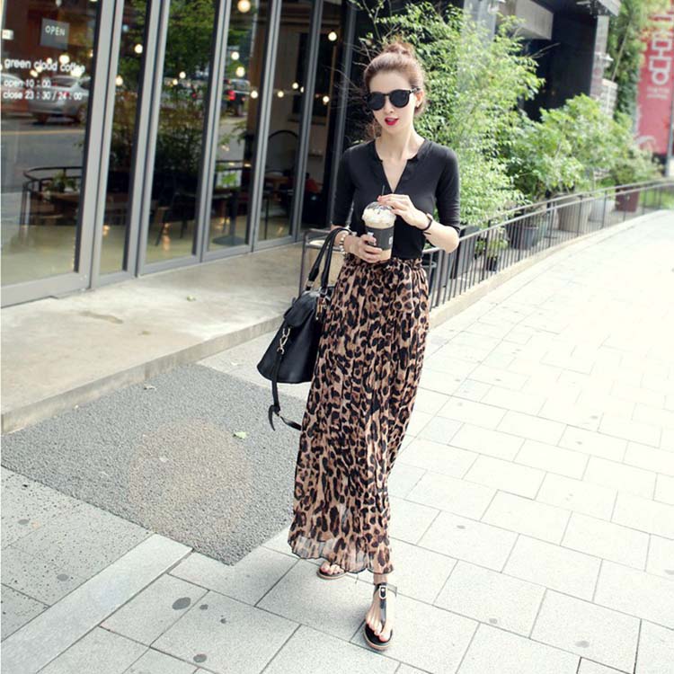 シフォンスカート ロング丈スカート フレアスカート ロング 大きいサイズ シフォン 豹柄 ヒョウ 総柄 体型カバー 着痩せ Aライン ワンサイズ フリーサイズ ハイウェスト