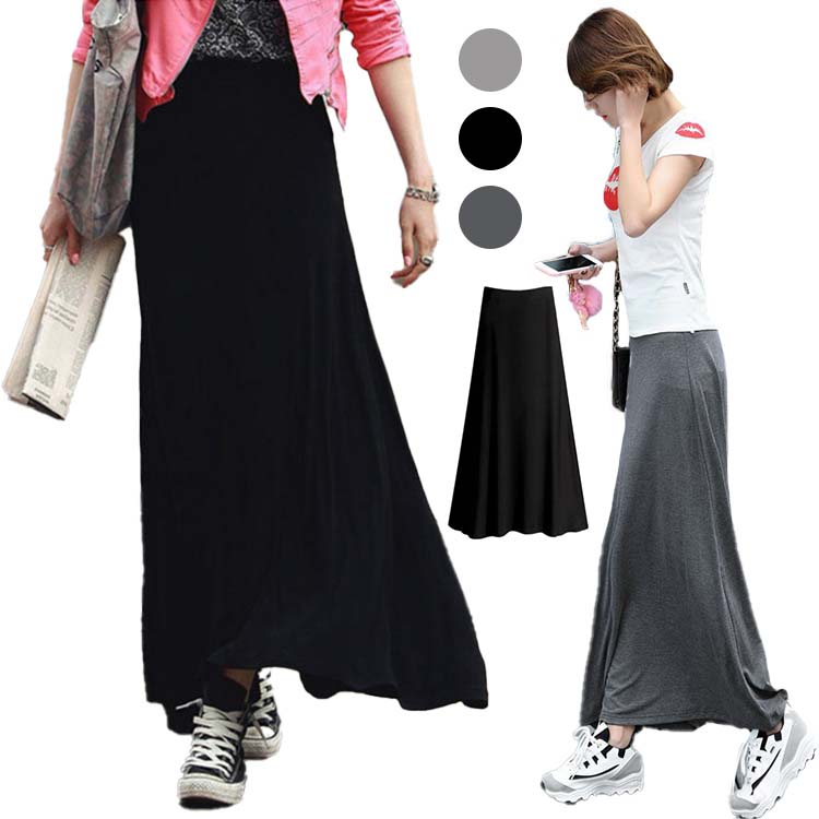 ロングスカート マキシスカート 春夏 モーダル カットソー ハイウェスト 着痩せ マキシ丈 無地 5色選べる ワンサイズ フリーサイズ 着痩せ 体型カバー タイトスカート スリット