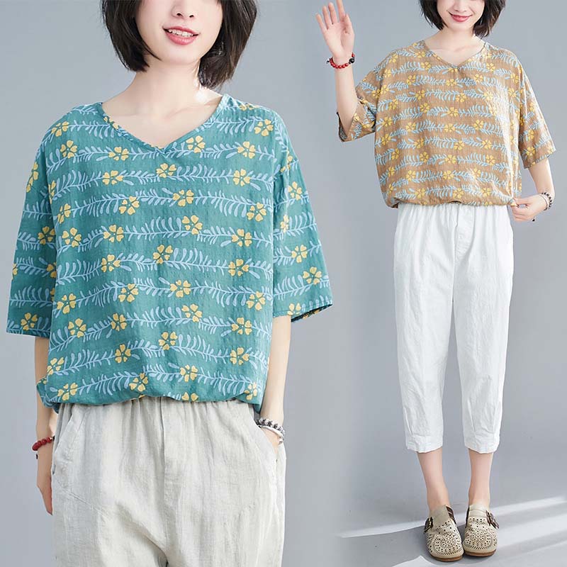セットアップ レディース セットアップ 40代 カジュアル 夏 大きいサイズ おしゃれ Tシャツ レディース 半袖 vネック カジュアル ゆったり 大きいサイズ 五分袖 花柄 総柄