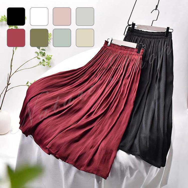 スカート レディース ミモレ丈 春夏 フレアスカート ロング 夏 春 ふわふわ Aライン 着痩せ 体型カバー キラキラ 無地 3色選べる 通勤 OL おしゃれ 美脚 可愛い かわいい