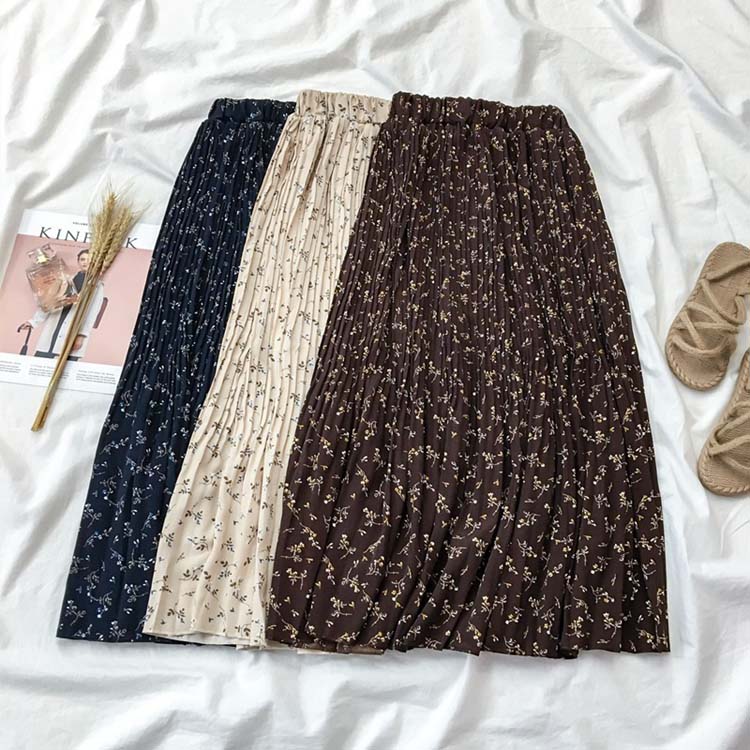 プリーツスカート ロング丈スカート フレアスカート ロング 春夏 柄 lサイズ 花柄 総柄 ワンサイズ フリーサイズ 3色選べる ハイウェスト おしゃれ 通勤 OL オフィス 大人