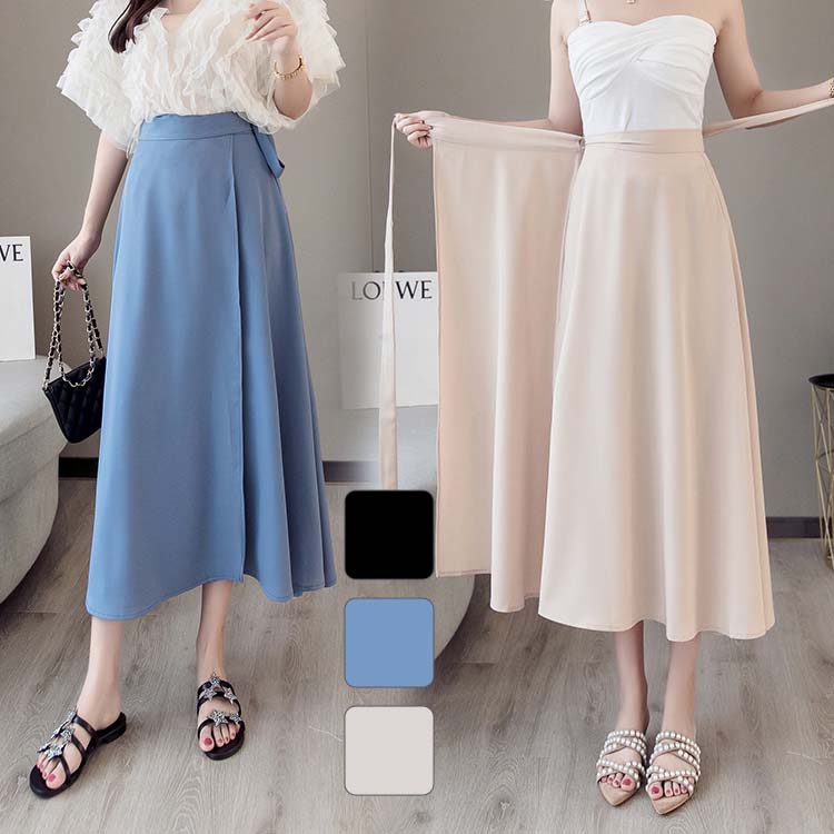 ロングスカート マキシスカート 春夏 サイズ フレアスカート シフォンスカート ロング ミモレ丈 リボン ハイウェスト フレア ライン 9 無地 ゆったり 大きいサイズ