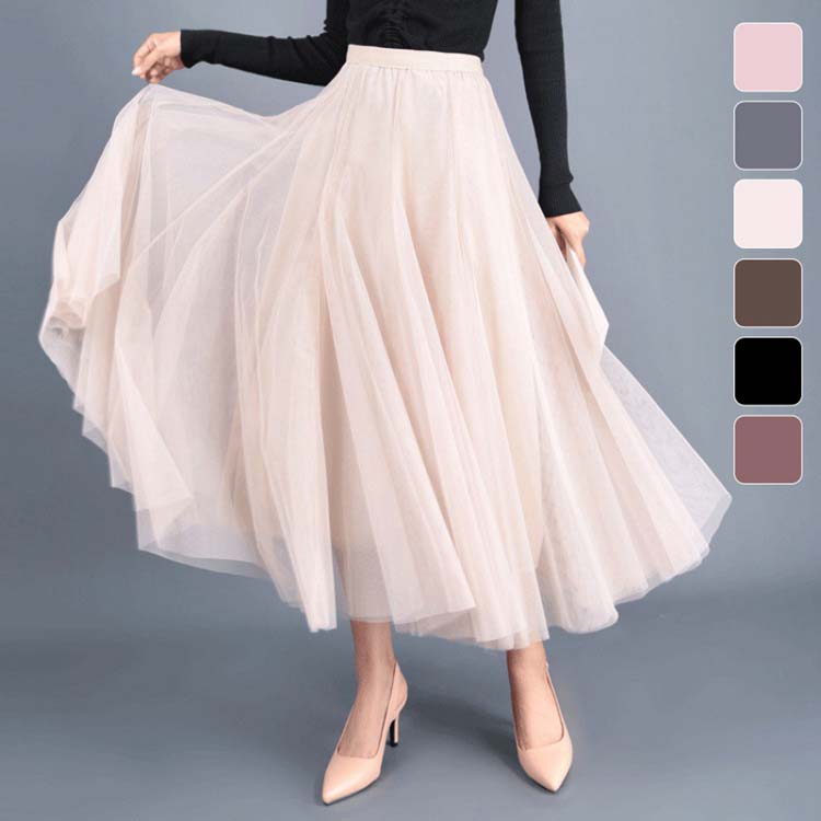 チュールスカート ロング マキシ丈 三層 ロングスカート マキシスカート 春夏 lサイズ 無地 Aライン ハイウェスト 7色選べる ハイウェスト ワンサイズ フリーサイズ ゆったり