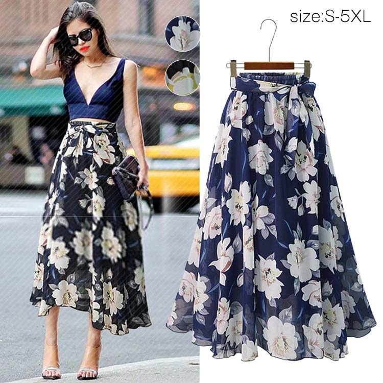 シフォンスカート ロング マキシ丈 ロングスカート マキシスカート 春夏 柄 lサイズ リボン 花柄 総柄 4色選べる 大人 20代 30代 40代 通勤 おしゃれ ハイウェスト