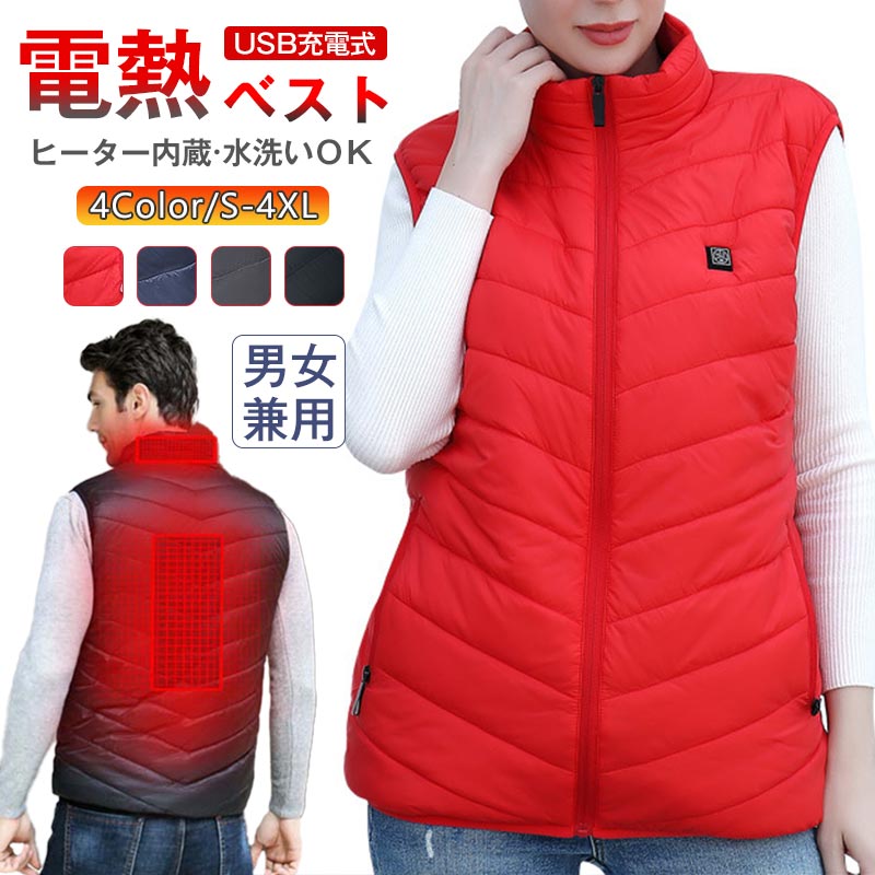 電熱ベスト ヒーターベスト ヒーター内蔵 防寒ベスト 男女兼用 メンズ レディース 3段階温度調整 防寒チョッキジャケット アウトドア 丸洗い バイク 釣り 登山 暖かい 屋外作業