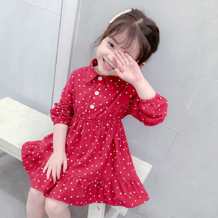 2020新作 ワンピース キッズ 女の子 長袖 春秋冬 ガールズ レジャー 可愛い 子どもワンピース おしゃれ キッズワンピース 切り替え ベビー服 子供ドレス ハート柄