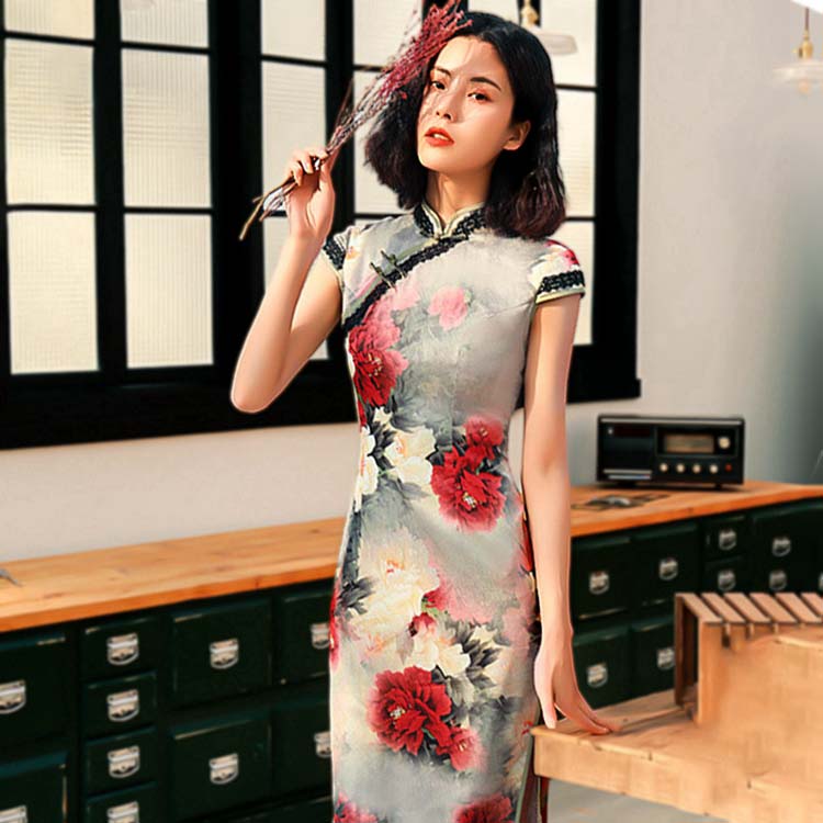 ロング チャイナドレス チャイナ服中華服 中国風 大きいサイズ 牡丹花 シックな 中華ドレス フォマールドレス 唐装漢服 古典服 ダンス衣装 華流 コスプレ衣装