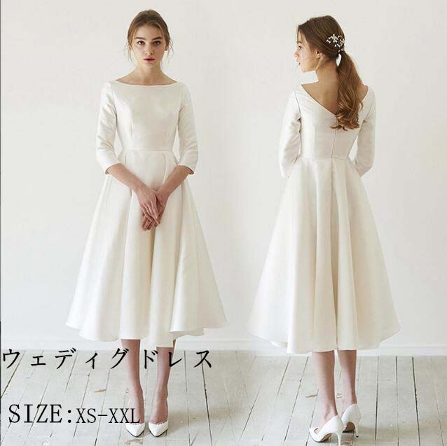 披露宴 大きいサイズ 白ワンピース お呼ばれ 二次会 ミニ カジュアル パーティドレス 結婚式 丈 白 ドレス コンサート ウェディグドレス 演奏会 衣装 花嫁
