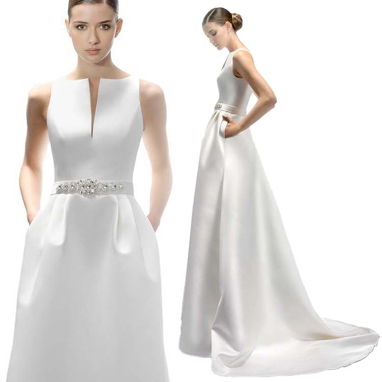 フォーマル サッシュベルト 披露宴 発表会 白 サテン ブライダル 花嫁 パーティードレス ラインドレス 結婚式 ウエディングドレス 大きいサイズ|小きいサイズ ウェディングドレス