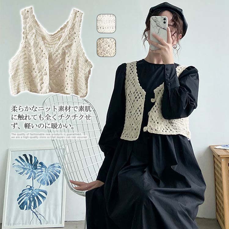 ニットベスト レディース 春夏 トップス 透かし編み カジュアル ボレロ 無地 レイヤード おしゃれ 羽織 カーディガン 秋 冬 ショート丈 前開き 可愛い レディース ベスト