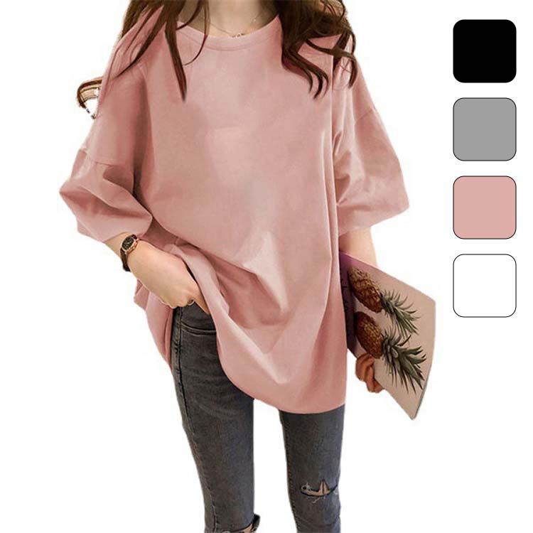 Tシャツ レディース 半袖 ゆったり カジュアル 大きいサイズ ロング丈 カットソー 半袖 レディース きれいめ 五分袖 トップス 無地 10色選べる 夏 夏服 オーバーサイズ