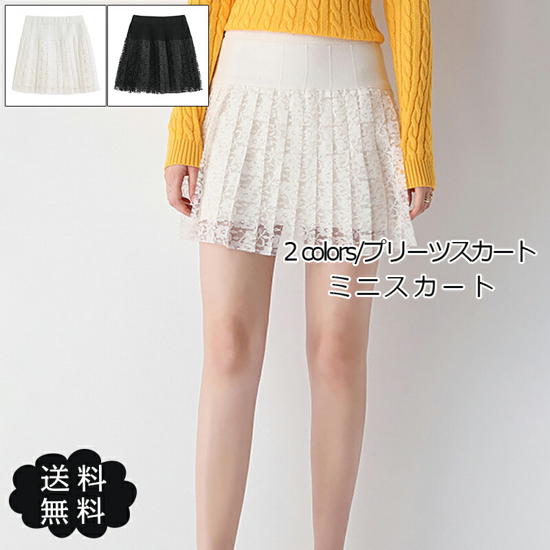 プリーツスカート レディース Aライン レース付き ミニ丈 ハイウエスト セクシー 無地 カジュアル フレアスカート 美脚 春夏秋 ボトムス おしゃれ