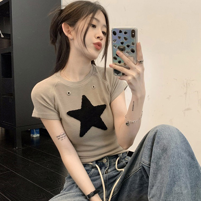 星柄 Tシャツ レディース 半袖 トップス 星 スター Tシャツ カジュアル 刺 ギフト プレゼント