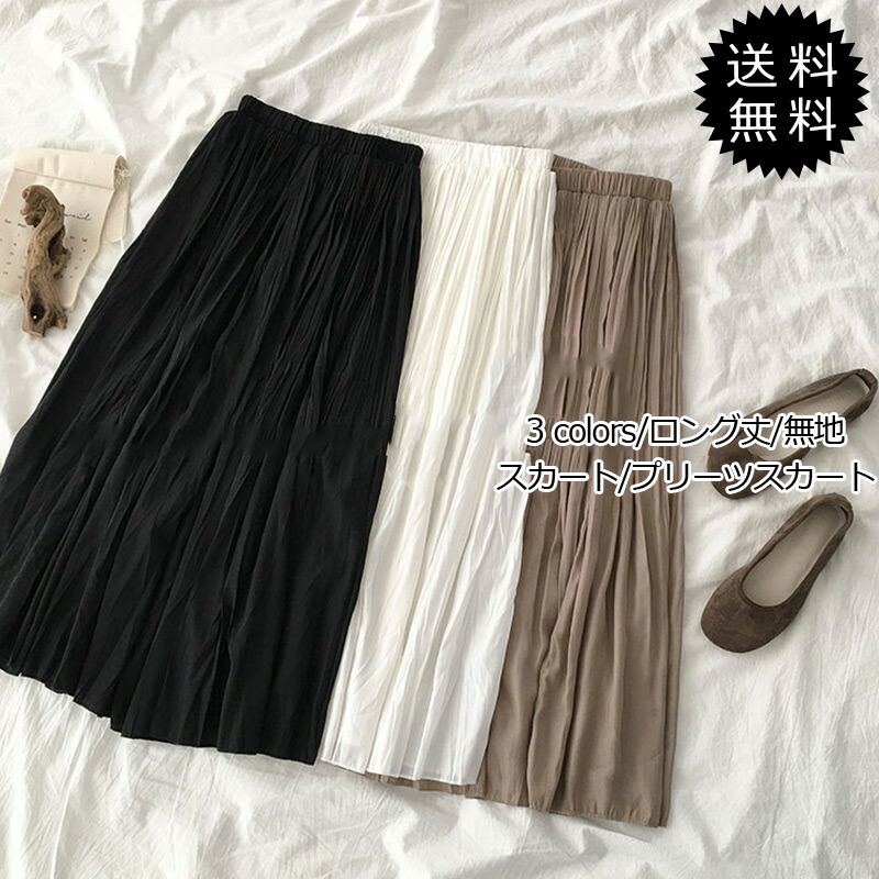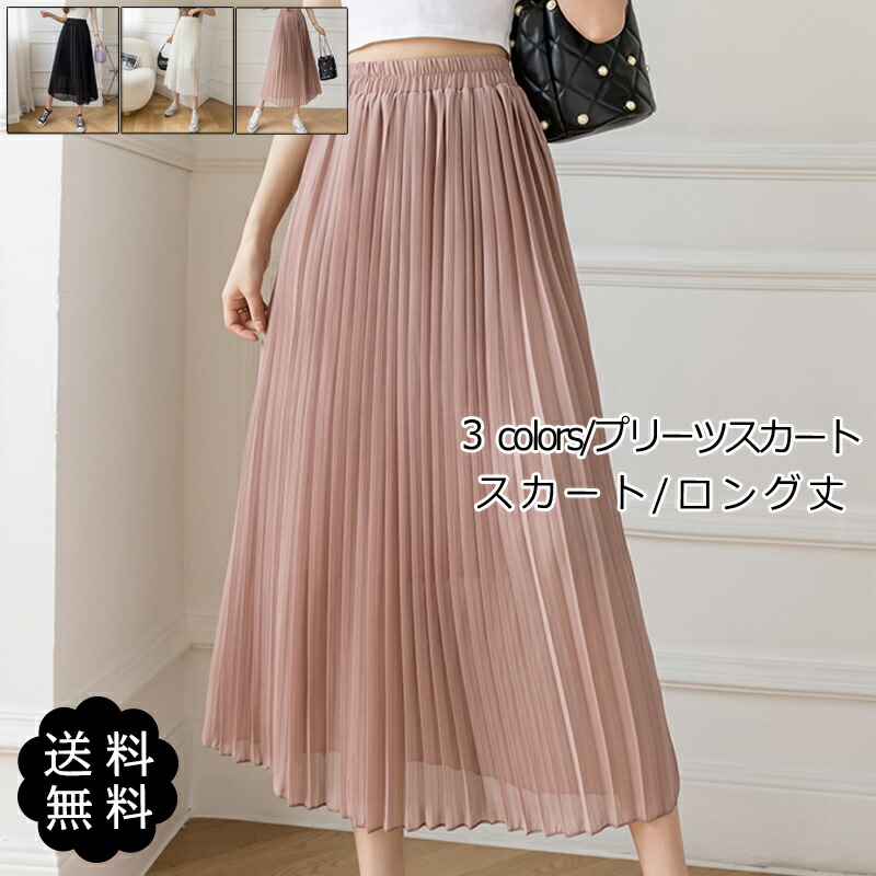 スカート レディース プリーツスカート ロング丈 無地 シフォン ウエストゴム ボトムス カジュアル ハイウエスト 春夏 きれいめ オシャレ