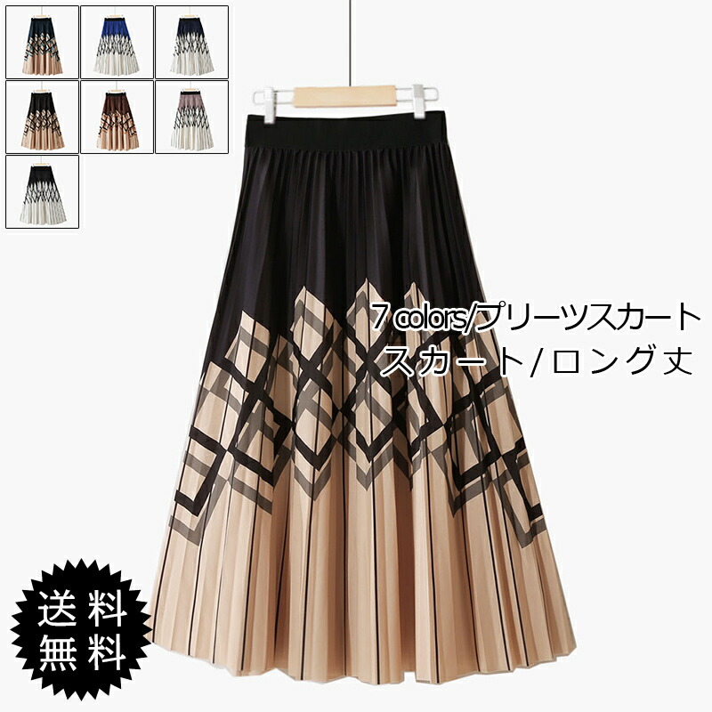プリーツスカート レディース スカート 几何柄 シフォン ミモレ丈 ハイウエスト 着痩せ ウエストゴム 春夏秋 オフィス きれいめ おしゃれ