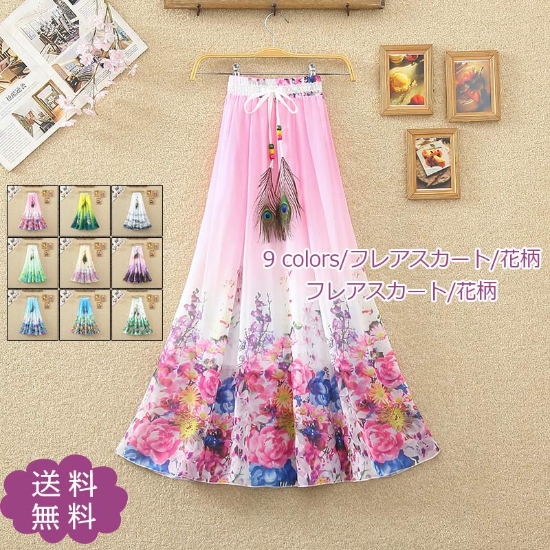 マキシスカート レディース シフォン フレアスカー`ト 花柄 Aライン 大きいサイズ ウエストゴム エレガント ビーチ きれいめ おしゃれ