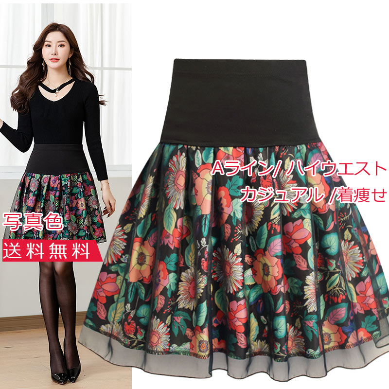 プリーツスカート レディース ミニスカート 花柄 メッシュ ボリューム ボトムス カジュアル ハイウエスト ウエストゴム 着痩せ 美脚 おしゃれ