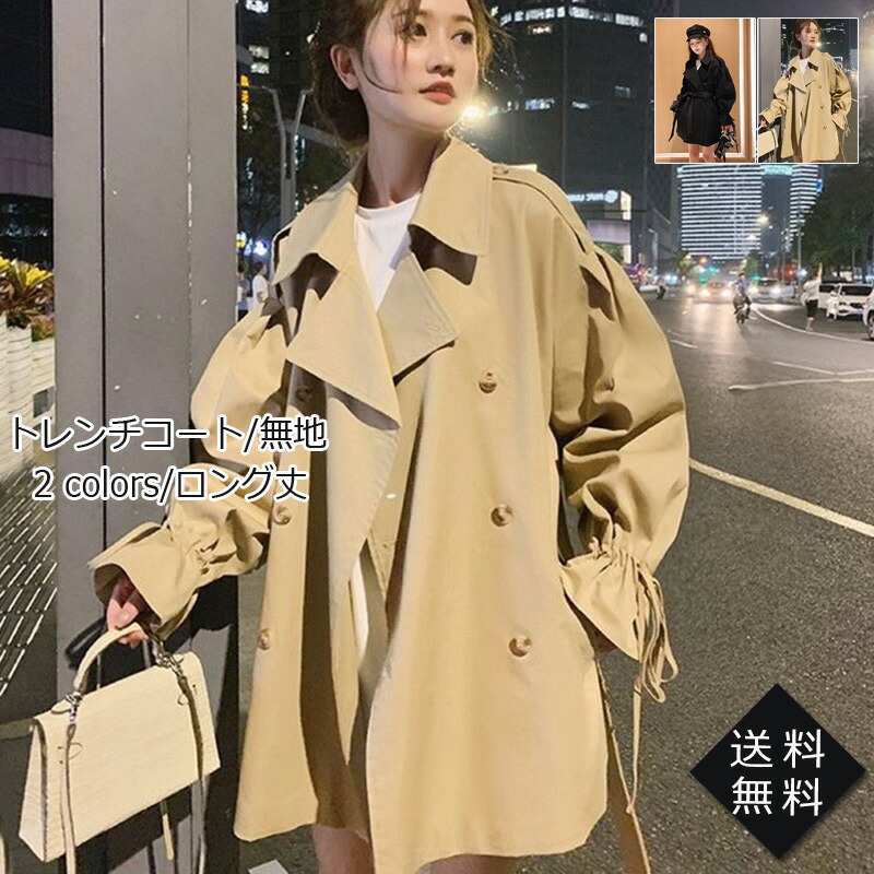 トレンチコート 無地 ロング丈 リボン付き ゆったり おしゃれレディースファッション コート ジャケット