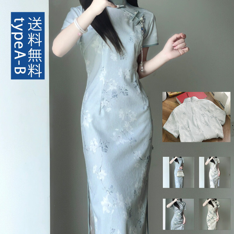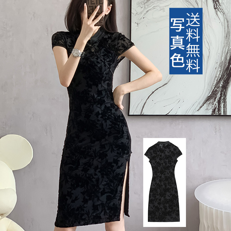 夏 ワンピース ブラック 中華服 チャイナ風 スリットワンピースレディースファッション ドレス