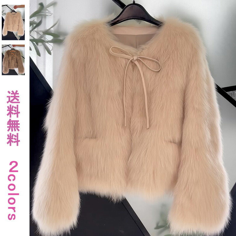 ボアコート ファーコート レディース ショート丈 毛皮コート 防寒 上品 もこもこ ノーカラー ショートコート ジャケット 秋冬 アウター リボン ボリューム ふわふわ 通勤 おしゃれ お呼ばれ デー