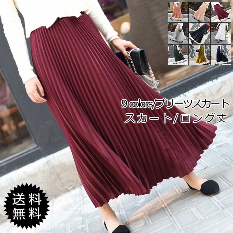 プリーツスカート レディース スカート シフォン 無地 マキシ丈 ハイウエスト ウエストゴム 体型カバー 春夏秋 オフィス きれいめ おしゃれ