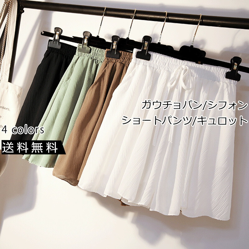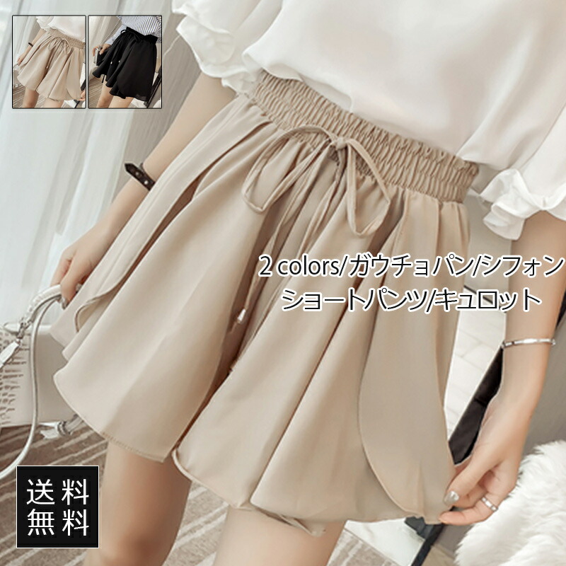 ガウチョパンツ レディース キュロット Aライン 無地 リボン 可愛い シフォン ショートパンツ ハイウエスト 夏用 ボトムス きれいめ おしゃれ