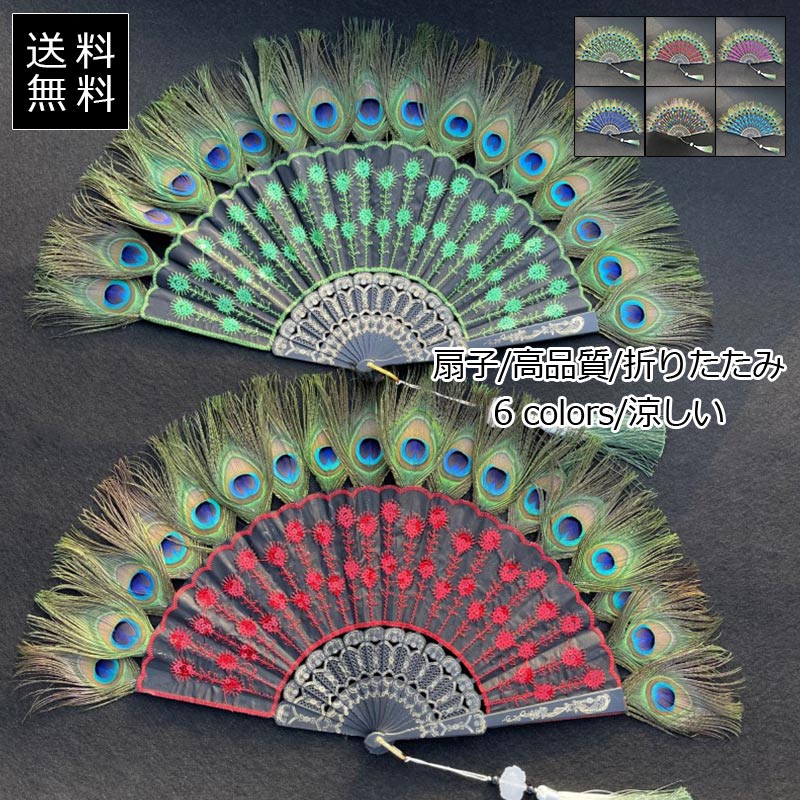 扇子 レディース クジャクの羽 シルク 折りたたみ プレゼント 高品質 せんす 猛暑対策 携帯用 女性用 夏用 涼しい きれいめ おしゃれ