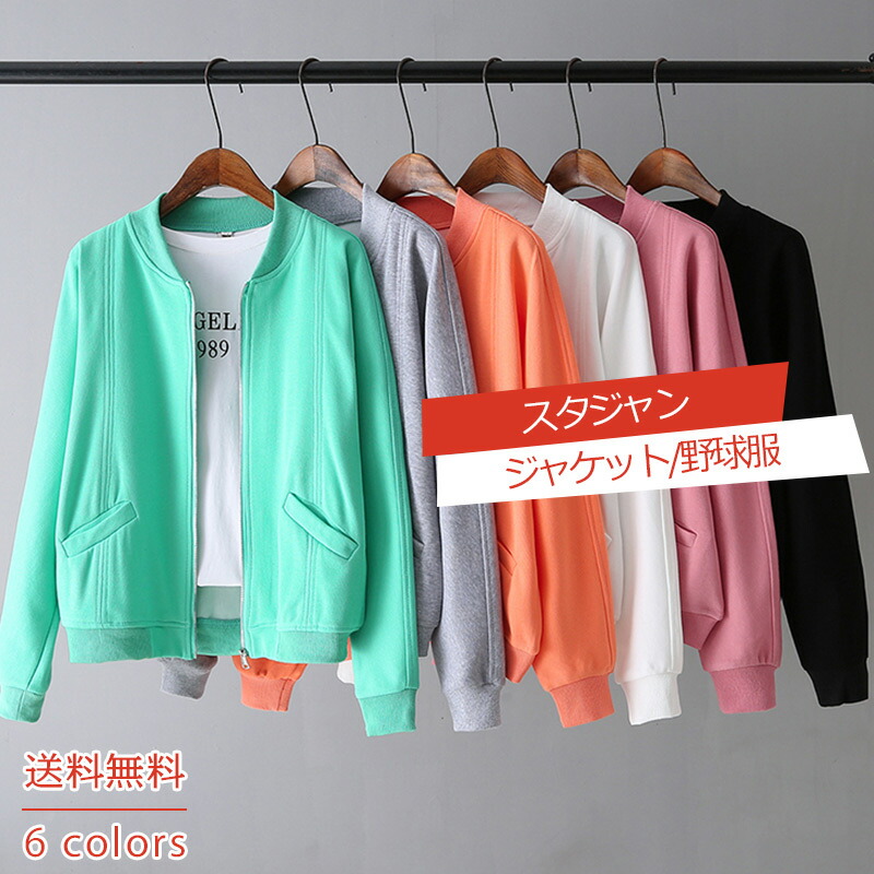 スタジャン レディース ジャケット 長袖 ショート丈 無地 シンプル ポケット付き 体型カ 些` カジュアル ブルゾン トップス アウター 春秋 おしゃれ