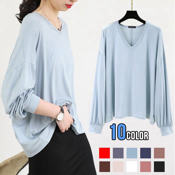 Tシャツ レディース トップス 長袖 バルーン袖 モダール 長袖tシャツレディースファッション トップス Tシャツ カットソー