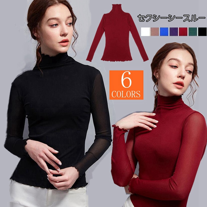 シースルー トップス インナー ハイネック ネック レディースレディースファッション トップス シャツ カットソー