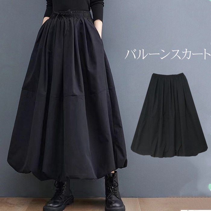 バルーンスカート ボトムス レディース スカート ロング ゆったり 黒 大きいサイズ フレアスカート フレア バルーンスカート 春 秋 冬